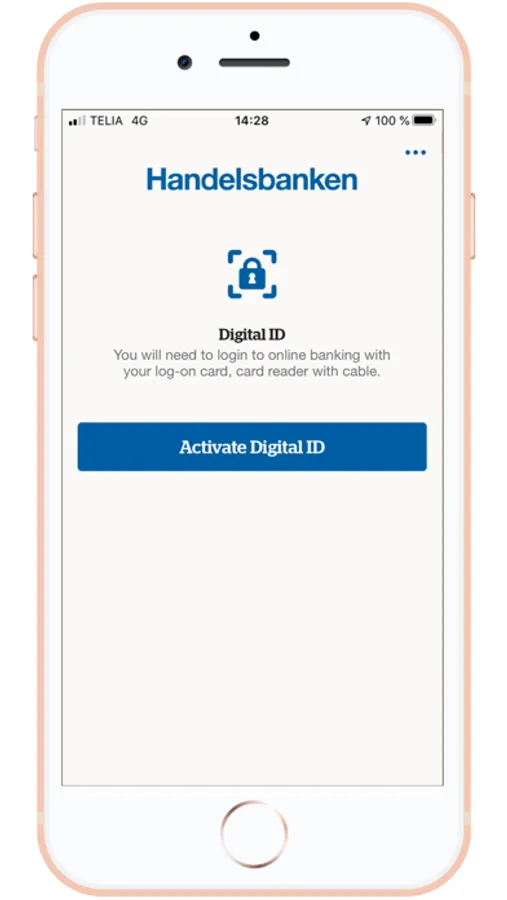 Handelsbanken Digital ID is our new log in and authentication app which gives you another secure way to access online banking and approve payments. It can be used as an alternative to the logon card and card reader, giving you more choice when you wish to access your accounts online.