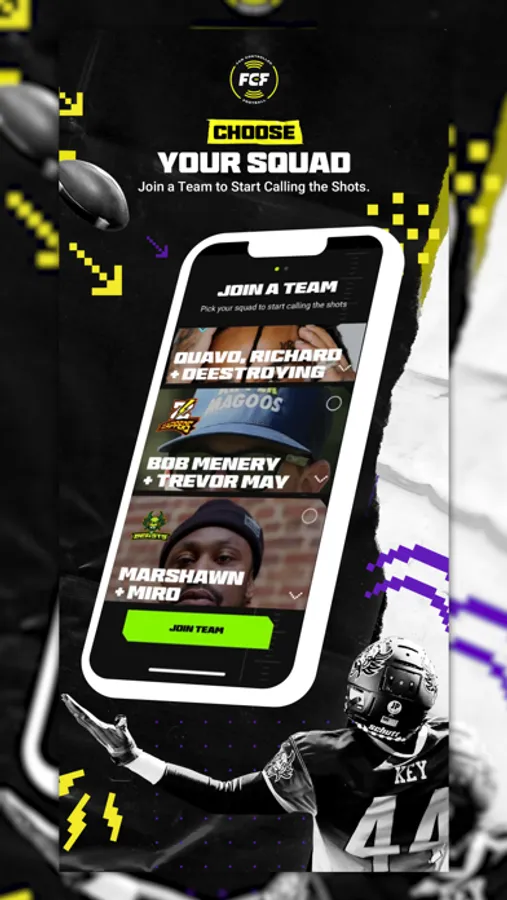 FCF teams have their own unique style with celebrity ownership groups that include NFL legends, popular Twitch streamers, hit musicians, and social media stars who take an active role in setting their team on the path to The People’s Championship.