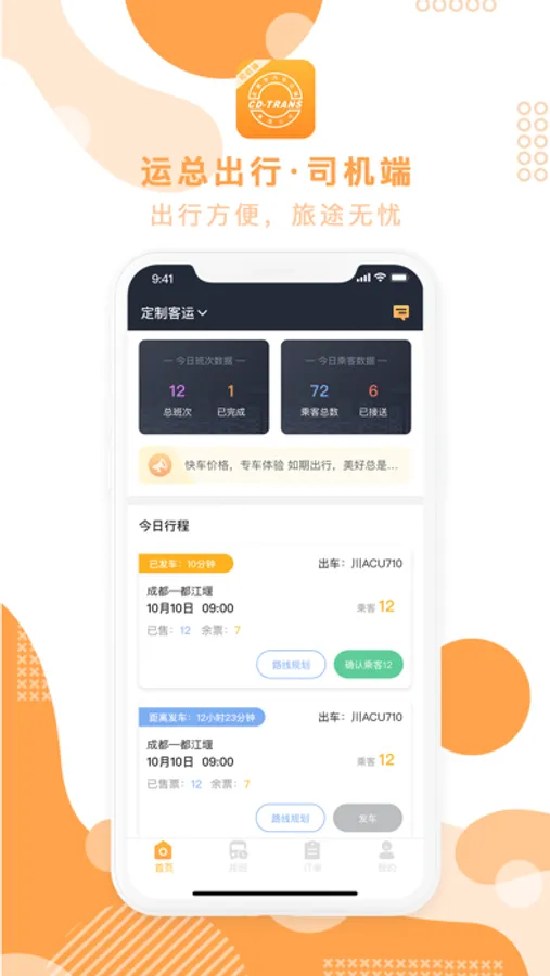 “运总出行”,是一款智能综合出行APP,是集城际专车、汽车票、旅游以及包车等多种产品为一体的网络服务平台。在“互联网+”的时代背景下,公司依托于自有的营运大巴、车站、等线下一体化资源,以移动互联网整合传统运输业,推出专业、安全、全面的智能出行平台—“运总出行”旨在为大众出行提供便捷出行服务