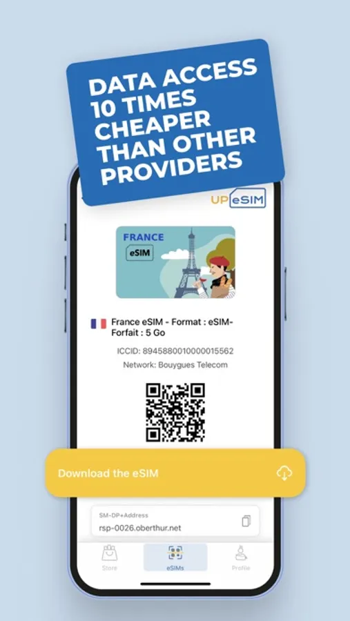 You can instantly download the esim from the UPeSIM free application that is available on the App Store. Just take a minute beforehand to check if your device is compatible. Then let us guide you step by step. Automatic installation is a key feature so you will be connected in no time thanks to instant delivery of the sim card by email with a QR code.