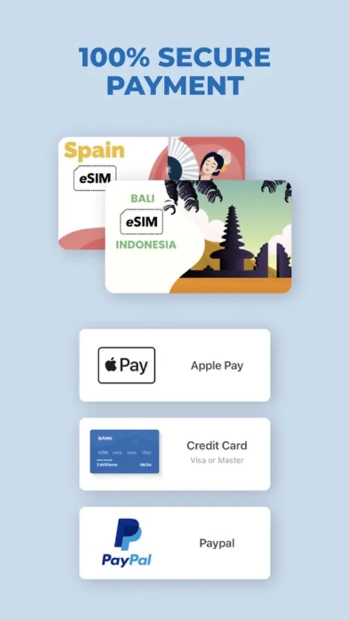 100% secure payment via Apple Pay, Credit Card, Paypal