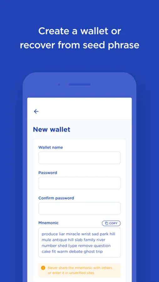 - Create a new Terra wallet or recover from seed phrase
