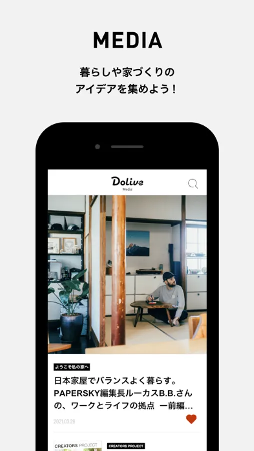 おしゃれな暮らしをしたい、こんな家が欲しいなど、暮らしや家づくりにアイデアを反映して、理想の家をシミュレーションできるのがDoliveアプリです。