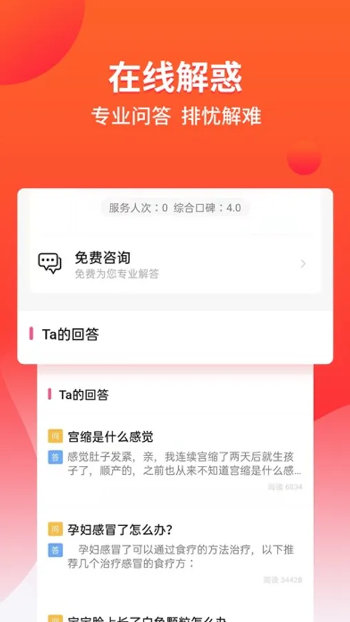 【问答】用户可通过在线问答,及时向育儿达人寻求帮助。