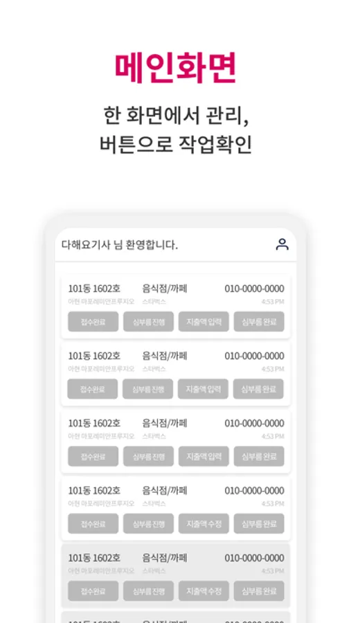 음식/까페 등 배달 – 해당 건물안과 근처의 음식점/까페등의 배달서비스