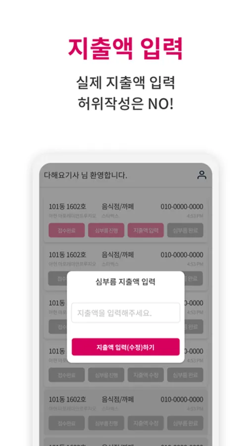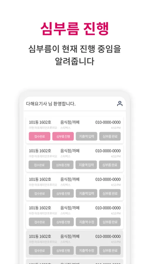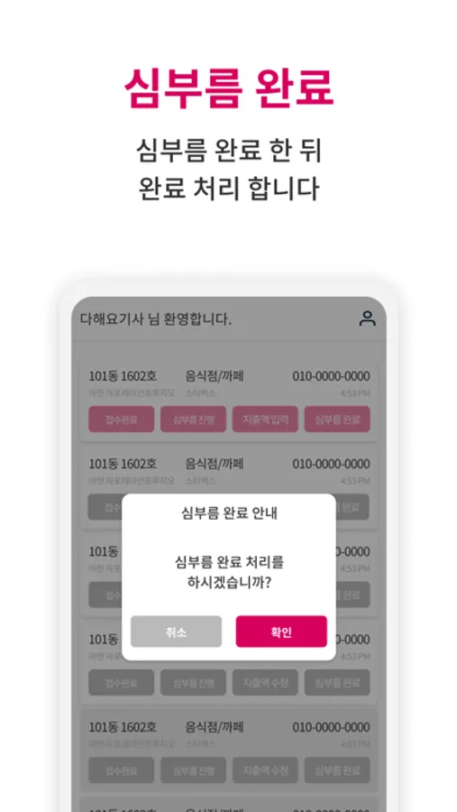 다해요 마트와 연계된 복수 배달 서비스 가능