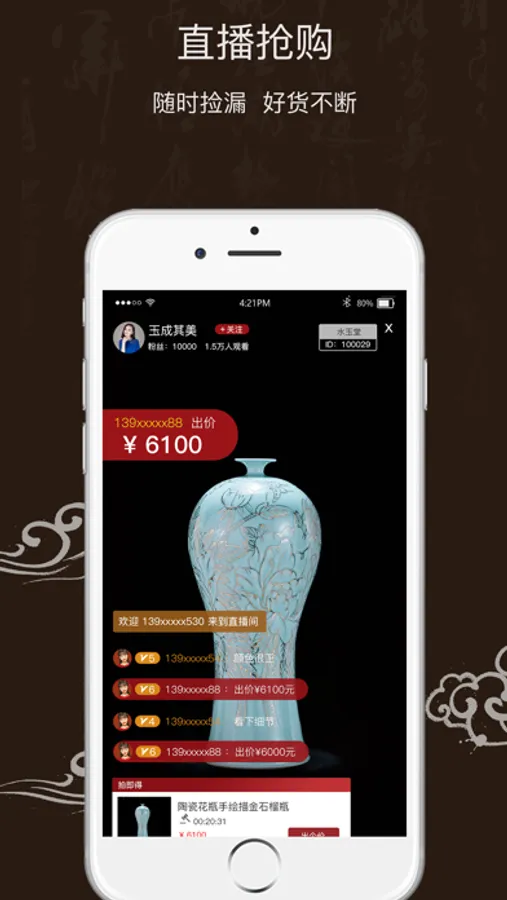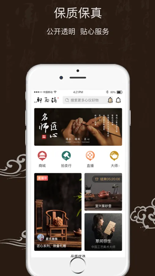 汇聚和田玉、翡翠、字画、紫砂、文玩等品类的众多艺术大师,更加直观地欣赏大师作品,更有机会同大师互动独享私人定制。尽显艺术品收藏价值!