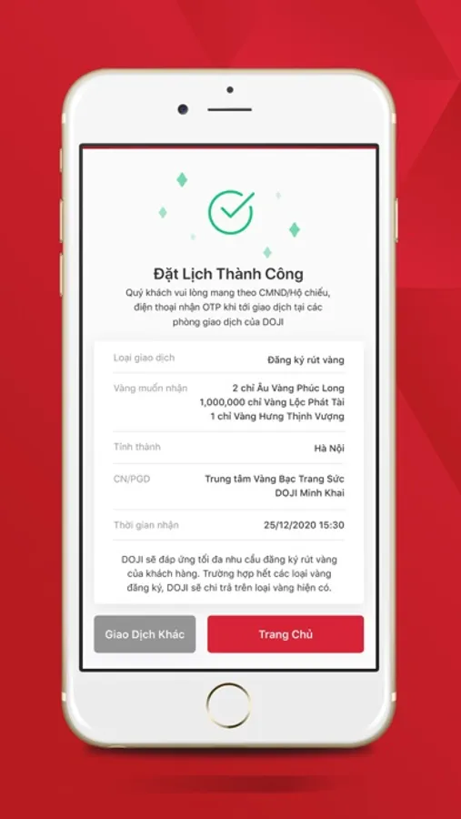 Bước 4: Xác nhận giao dịch mua/bán vàng