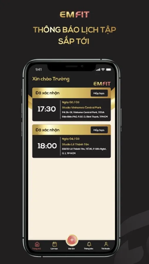 Cá nhân sau khi trở thành khách hàng của Emfit, sẽ được cung cấp tài khoản để sử dụng ứng dụng cho việc đặt lịch tập và tương tác với Emfit.