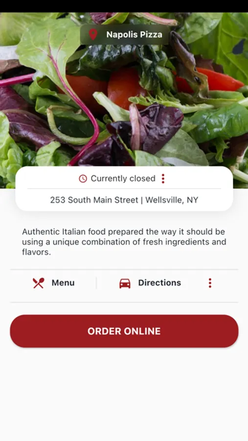 Napoli Pizza of Wellsville restaurant app has many different functions. It contains an online ordering link, restaurant images, address and driving directions, store hours, menus, and many other great features.
