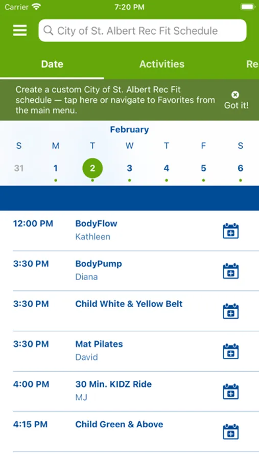 • Find and register for a program or drop-in class