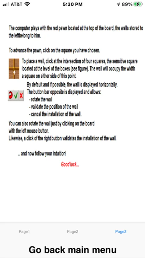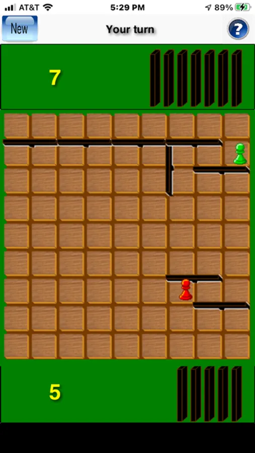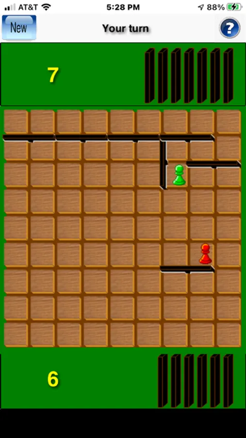 Walls can be placed directly between two spaces, in any groove not already occupied by a wall. However, a wall may not be placed which cuts off the only remaining path of any pawn to the side of the board it must reach.