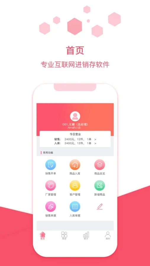 核心功能:商品信息、商品入库、库存管理、往来帐目、销售开单、数据统计、全局设置等。