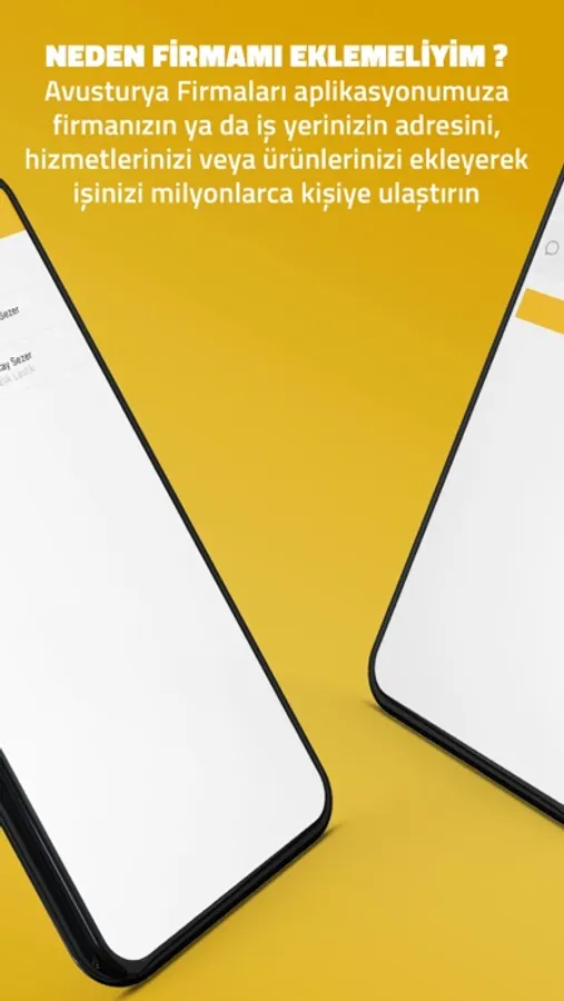 Avusturyaʼda Firma rehberi ile siz de hedef kitlenize ulaşın. Her ay yüzbinlerce insanın ziyaret ettiği Avusturya Firmaları Aplikasyonumuza firmanızın ya da iş yerinizin adresini, hizmetlerinizi veya ürünlerinizi ekleyerek, işinizi ve indirimlerinizi yüzbinlerce kişiye ulaştırın.