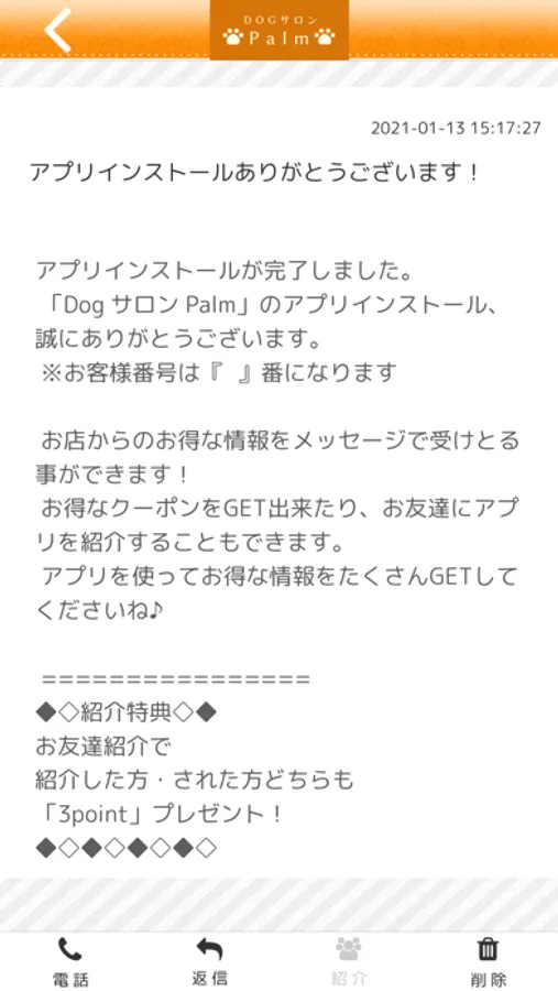 パームのアプリをSNSを通じてお友達に紹介する事ができます。
