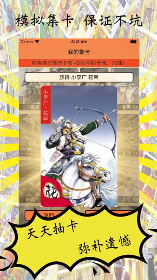 ● 集成模拟集卡功能,可以反复抽卡,反复把玩卡片!
