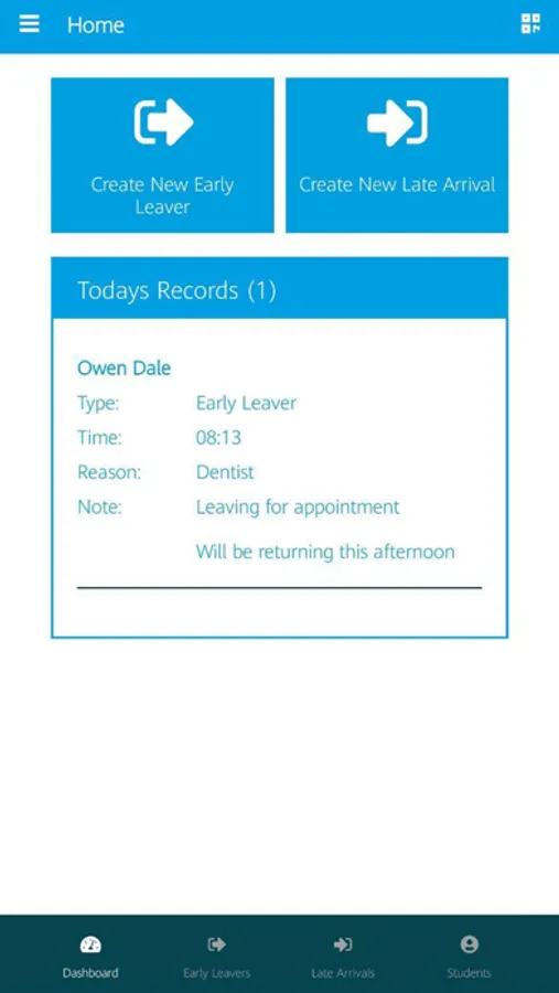Allows Early Leaver and Late Arrival Records to be created for Students along with the ability to view Historical Early Leaver and Late Arrival records for Students