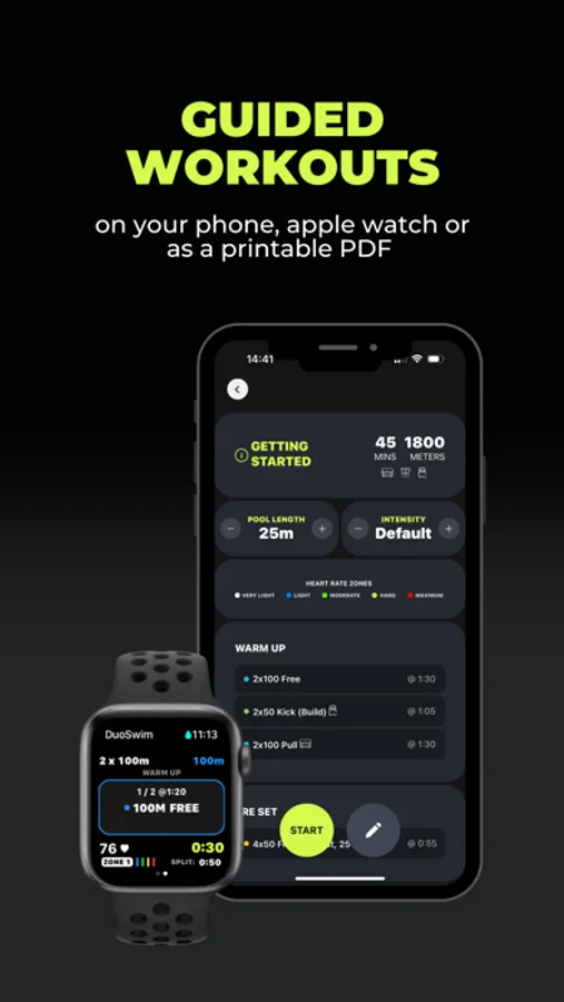 Get pool & dryland workouts on your phone, smartwatch or as a printable PDF. Track data such as distance, time, calories, heart rate, average pace and more when you pair a compatible smartwatch.