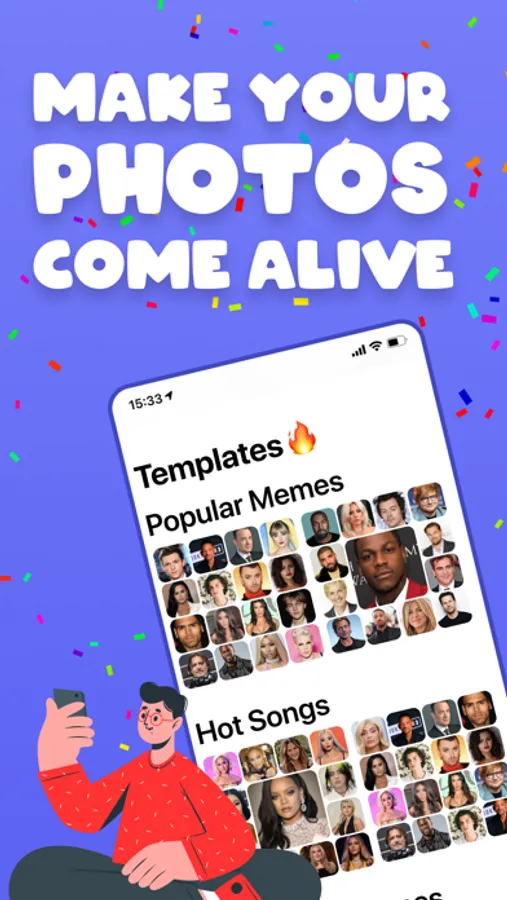 Upload a photo or video of a celebrity or your boss, choose a face animation template, and we'll create a funny video for you. Surprise your friends in just a few taps!