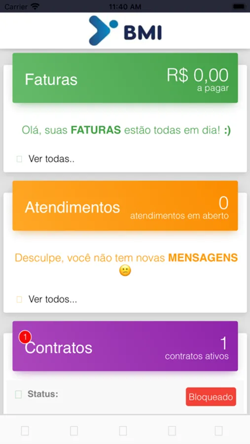 Faça toda gestão de sua conta BMI TELECOM sem complicações, com nosso APP você retira segunda via da fatura, realiza assinatura do contrato, faz o desbloqueio e muito mais...