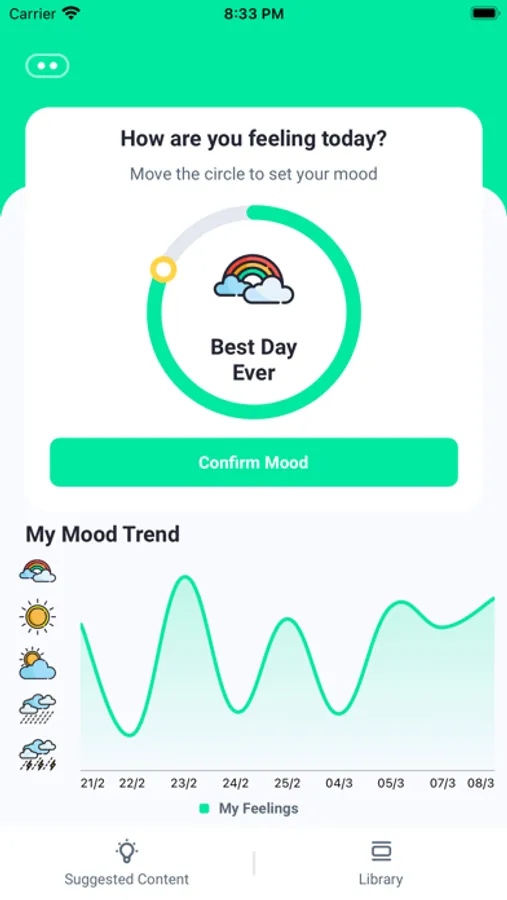 Interactive Mood Wheel enabling users to keep track of how they are feeling.