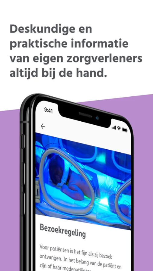 - Een uitgebreide bibliotheek met veel informatie uit het eigen ziekenhuis en een begrippenlijst. Zo heb je alle informatie altijd en overal bij de hand en kun je alles op het gemak nalezen.