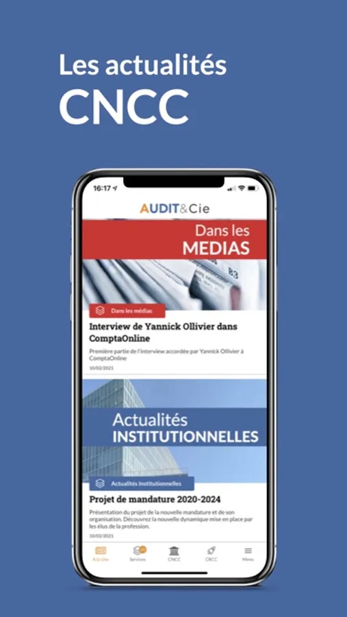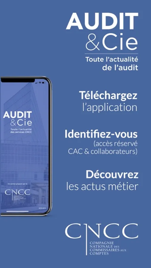 Conçue pour les professionnels de l’audit, l’app AUDIT&Cie offre un accès privilégié à l’actualité de l’audit diffusée par la CNCC et les CRCC.