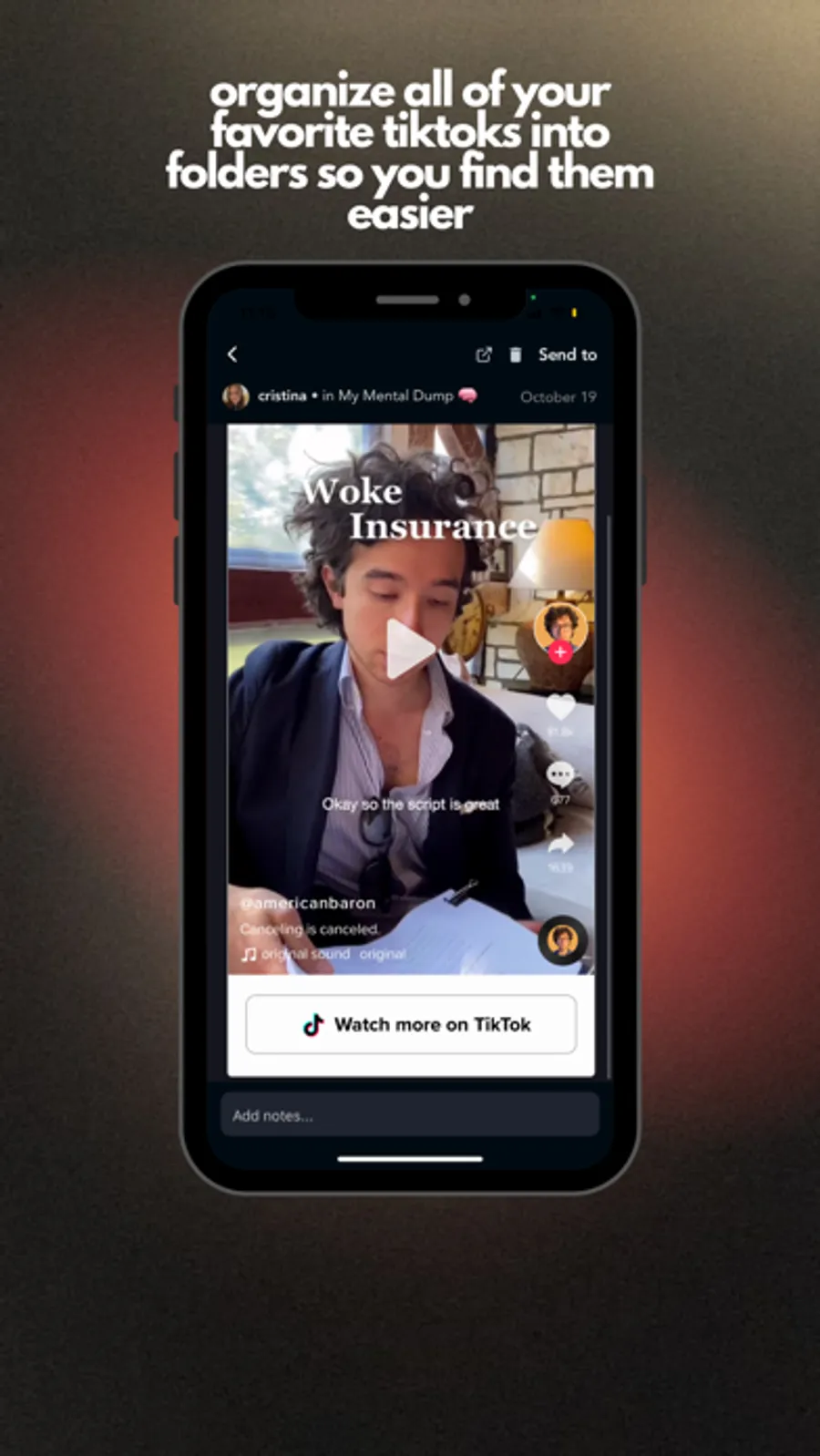 Spaces are the core entities on Odin. Each space allows for multiple collections so if you choose to have a deeper layer of organization, you can. For instance, you can have a “Recipes” space where you save all your favorite TikTok recipes, and inside that space, you get to have “Snacks”, “Main dishes”, “To try later” as collections.