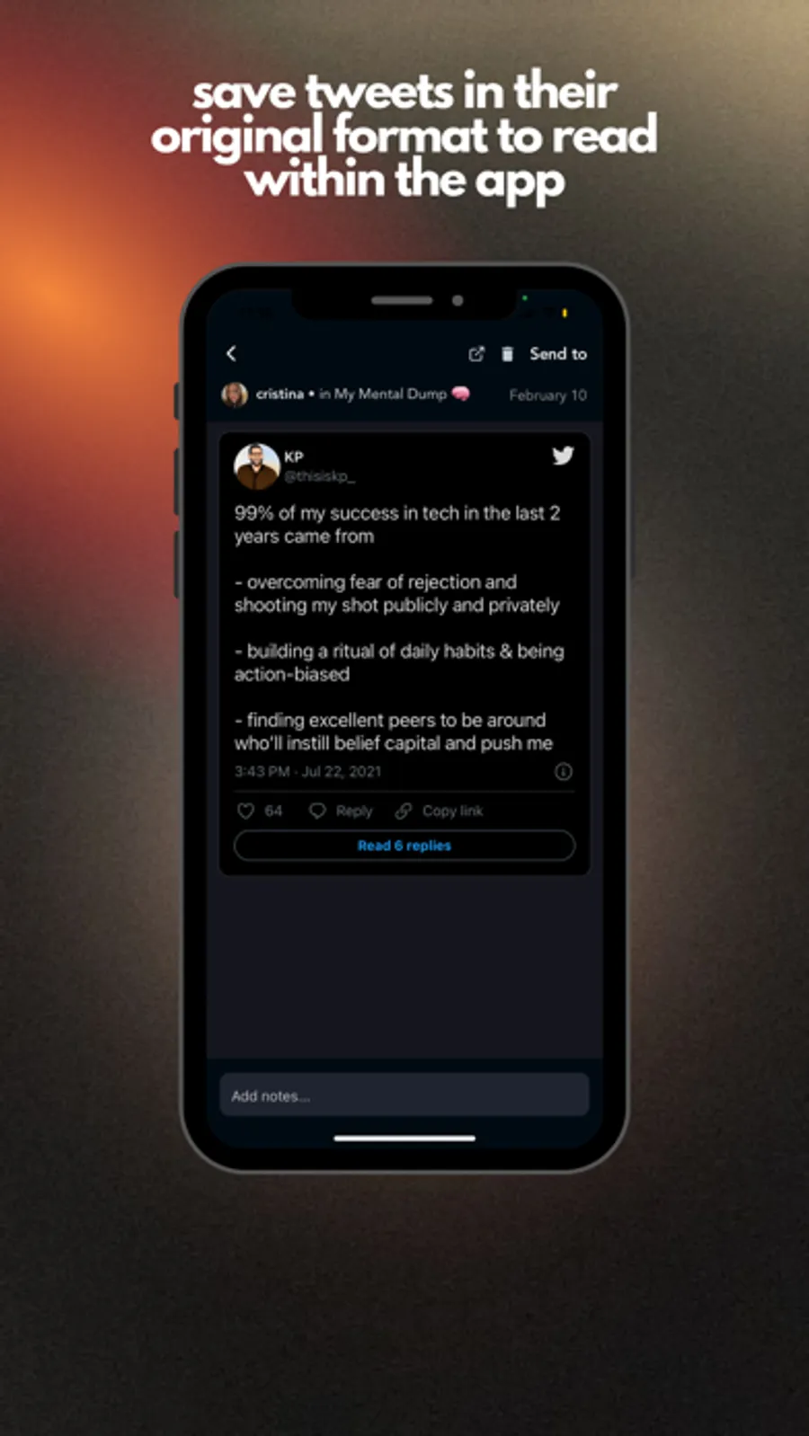 Search through any of the links and media you collect — less time trying to find that one post you saved two weeks ago, more time for actually consuming it.