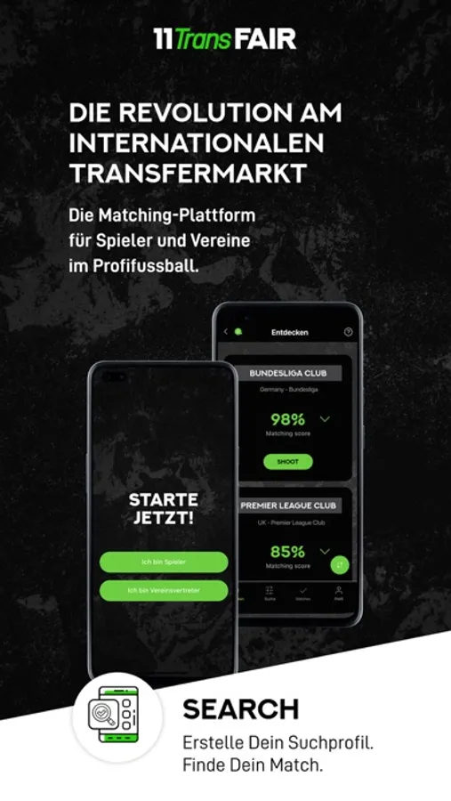 11TransFAIR is revolutionizing the international transfer market. We are a matchmaking platform for players and clubs in professional football. Get an overview of the international transfer market. No matter where you want to go, we got you. Take your career into your own hands!