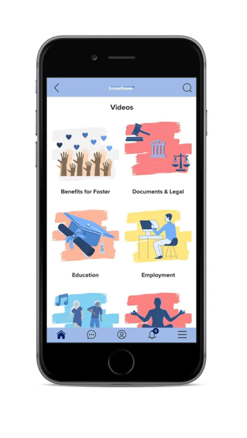 Designed to be an app for life, users can reliably and consistently find a positive social support community, kinship, tracked learning opportunities and life enrichment activities. Stepping Forward empowers eligible youth and mentor users with 100's of videos, articles, feeds and even livestream events, Eligible youth can access the critical need-to-knows of adult life, as well as find educational life skill tracks, groups, sports and hobbies they can become passionate about. No young adult should ever be alone and without support in America, and with Stepping Forward on their phone they never have to be ever again.