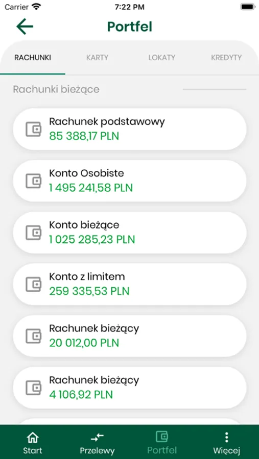 - prezentowanie rachunków, kart, lokat i kredytów klienta,