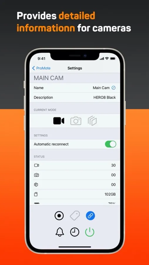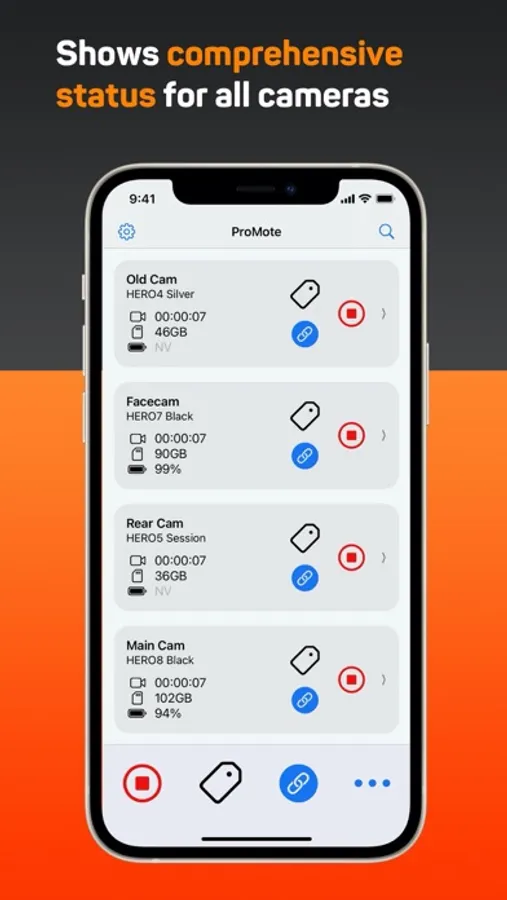 Using Pro-Mote, you can control multiple GoPro cameras, while getting all the important information about the status of the camera.