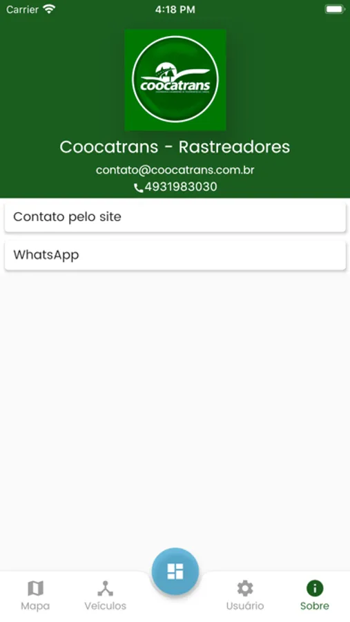 Aplicativo criado para facilitar o rastreamento dos veículos do PRV da Coocatrans.