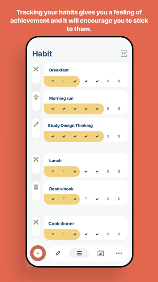 Create morning, afternoon, and night habits and get a weekly overview of your progress. Stay on top of your habits and achieve your goals.