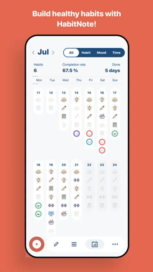 Transform your life and achieve your goals with MoreDone - the ultimate habit-building app. MoreDone allows you to track your daily habits, monitor your mood, and track your focus time all in one place. With HabitNote, you can set a daily goal for each habit and track your progress daily, weekly, and monthly. You can even upload photos and write comments about your activity, making it easier to visualize your progress and stick to new habits