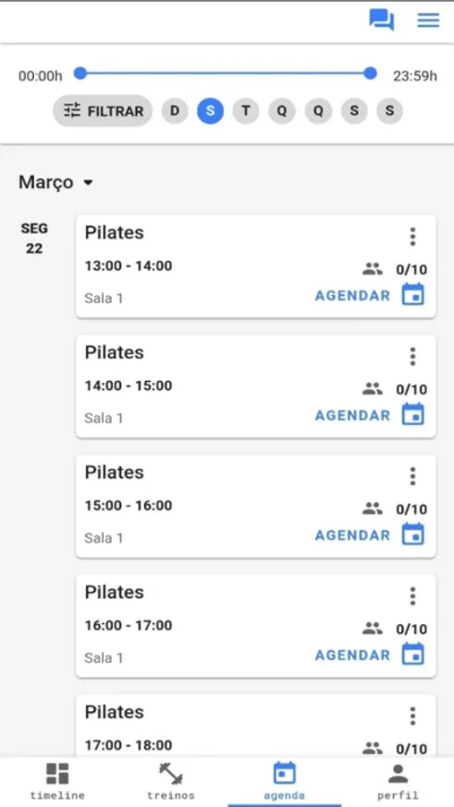 - Consulte a AGENDA de aulas: faça check-in, consulte horários, reserve lugar na sala e, se aula que você quer estiver lotada, seja notificado assim que tiver vaga disponível!