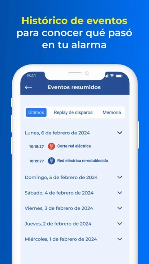 Cuando se produzca un evento en tu alarma, vas a recibir una notificación en tu celular. Activaciones y desactivaciones, disparos de la alarma (robo, incendio, sabotaje), cortes y restauraciones de la red eléctrica; en todo momento vas a estar informado de estos y otros eventos.