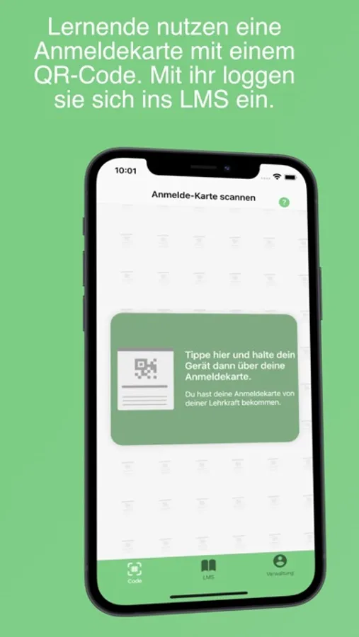 Das Kind kann die Anmelde-Karte mit Porta LMS einlesen. Das geht ganz einfach, denn die App startet direkt im Scan-Modus! Nach dem Erkennen der Karte erfolgt sofort der Login mit den hinterlegten Zugangsdaten.