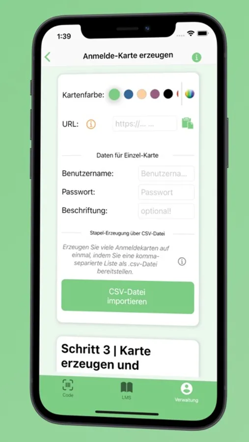 Sie erzeugen in Porta LMS eine Anmelde-Karte, die in einem QR-Code verschlüsselt die Zugangsdaten sowie die Ziel-Adresse in Ihrem LMS enthält. Sie können hier die Startseite der Lernplattform, einen einzelnen Kurs oder sogar eine Aktivität als Ziel festlegen. Die als Grafik erzeugten Anmelde-Karten drucken Sie aus und geben Sie dem Kind. Sie können auch mehrere Anmeldekarten erzeugen und so pro genutztem Dienst (moodle-Kurs 1, moodle-Kurs 2, Padlet, Antolin, usw.) eine Karte erzeugen und diese sogar farbig markieren!