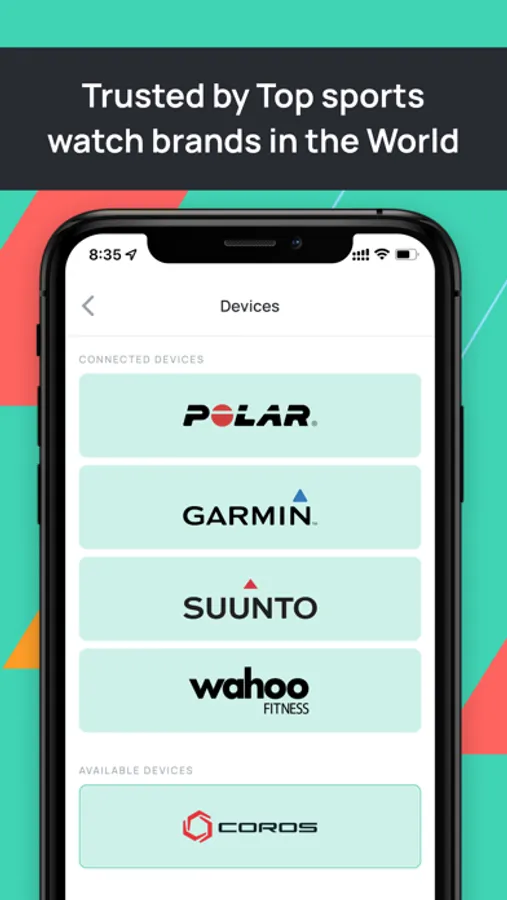 - Connect your Garmin, Polar, Suunto, Wahoo or Coros watch.