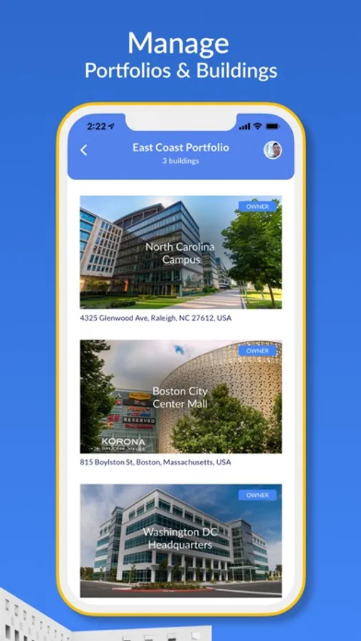 • Quickly access your building’s content while on the go. Browse your commercial real estate portfolio or building right on your device.