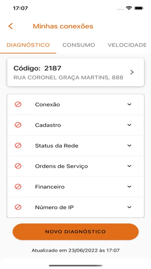Aplicativo para acessar o serviço de atendimento ao consumidor da Ultra Internet.