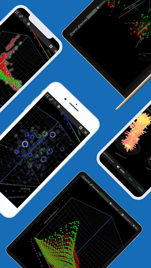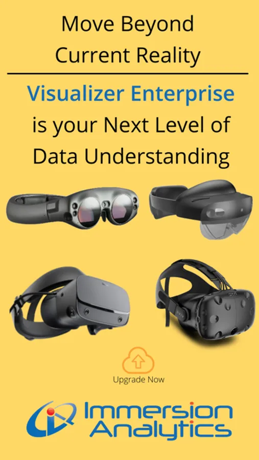 This free demo edition is limited to importing 500 rows and viewing up to 7 dimensions across scatter plots or bar charts with data imported via our Google Drive importer. To see up to 18 dimensions, use advanced visualization types, analyze larger files and link to your enterprise systems including Qlik Sense, Python & MATLAB, please contact@immersionanalytics.com.