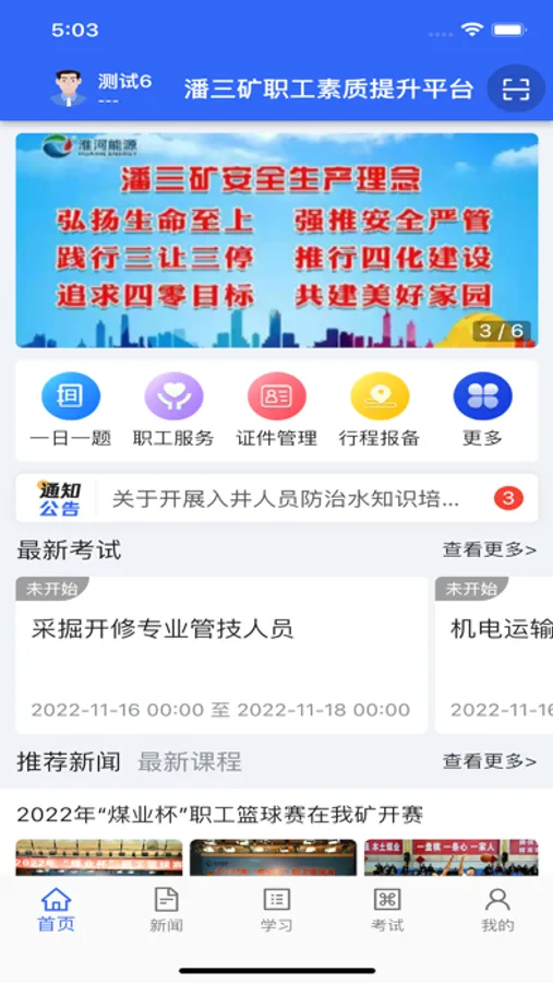 首页:培训考试、课程相关;新闻展示等功能