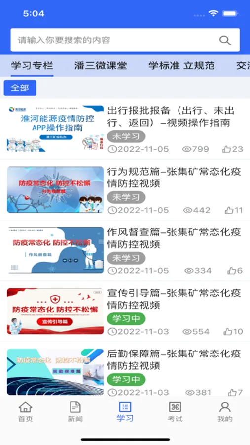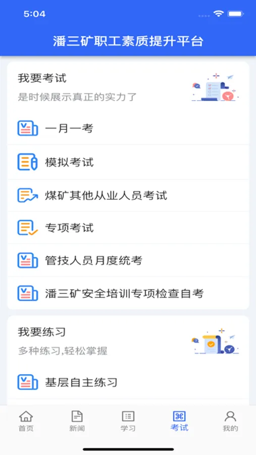 职工学习平台是一个为工作者进行各种技能、安全等培训的APP,它主要包括五个部分: