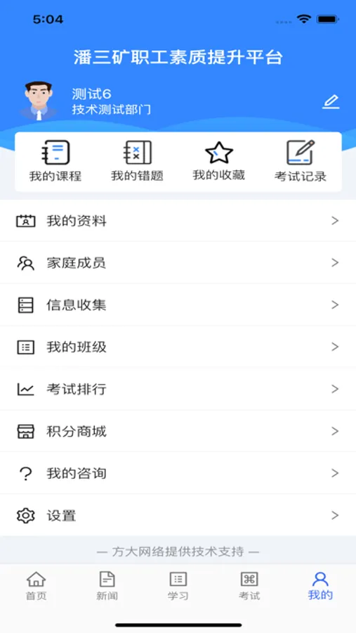 我的:个人模块、学习记录、考试排行等