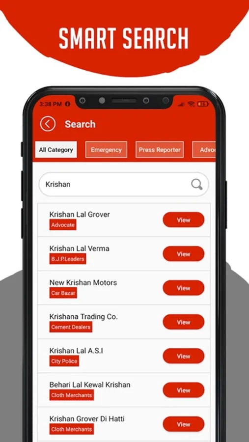 The red bar at the top provides a list of 10 Emergency and Daily need categories. This is just for the convenience of the user in case they are searching for the categories in an emergency.