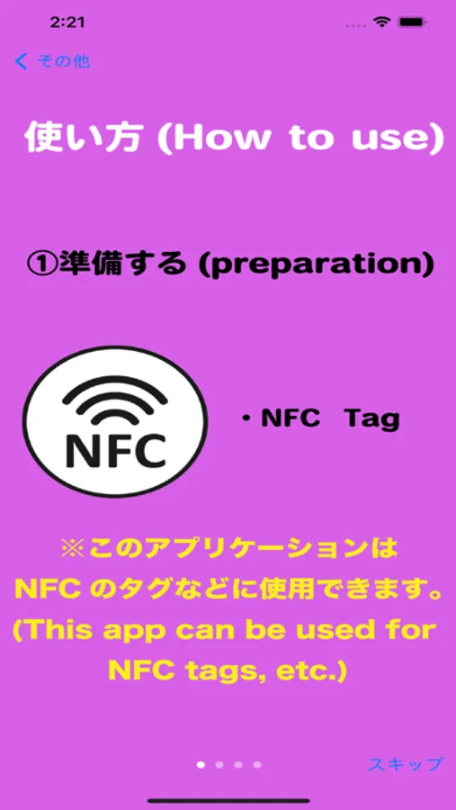 NFCタグにテキストやURLの書き込み、読み込み、消去ができます。
