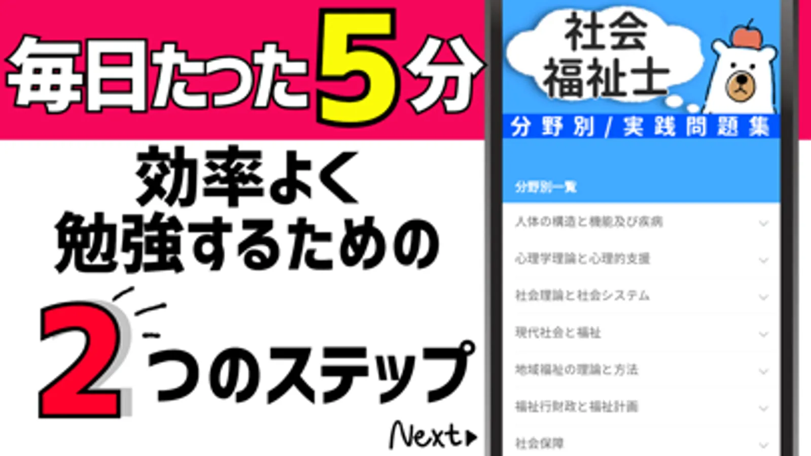 社会福祉士試験の過去問対策、分野別問題アプリです!